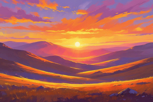 Arte digital vibrante que captura a beleza do nascer do sol.